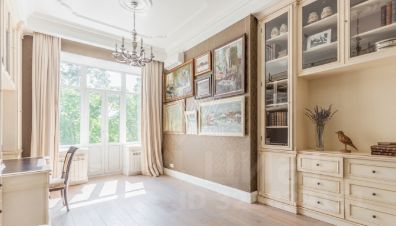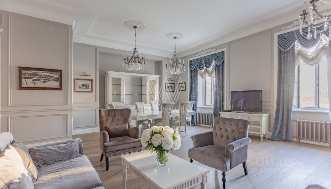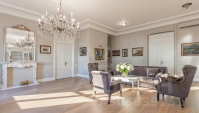 Бонус партнёрам 50%. Просторная квартира площадью 200 м² в доме на Чистых прудах. Выполнен дизайнерский ремонт в дворцовом стиле. Интерьер оформлен в лаконичных светлых тонах. Полы выложены натуральным деревом, стены украшены картинами. Высокие потолки с подвесными люстрами и лепниной.