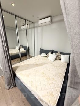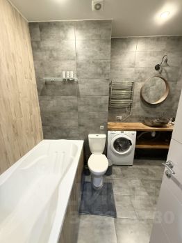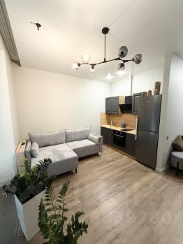 В квартире выполнен дизайнерский ремонт, продуманный до мелочей. Совмещённый санузел оборудован ванной. Вся необходимая техника в наличии: кондиционер, холодильник, телевизор и стиральная машина. Для комфортной жизни на кухне и в комнате есть мебель.