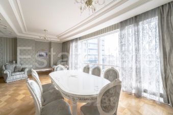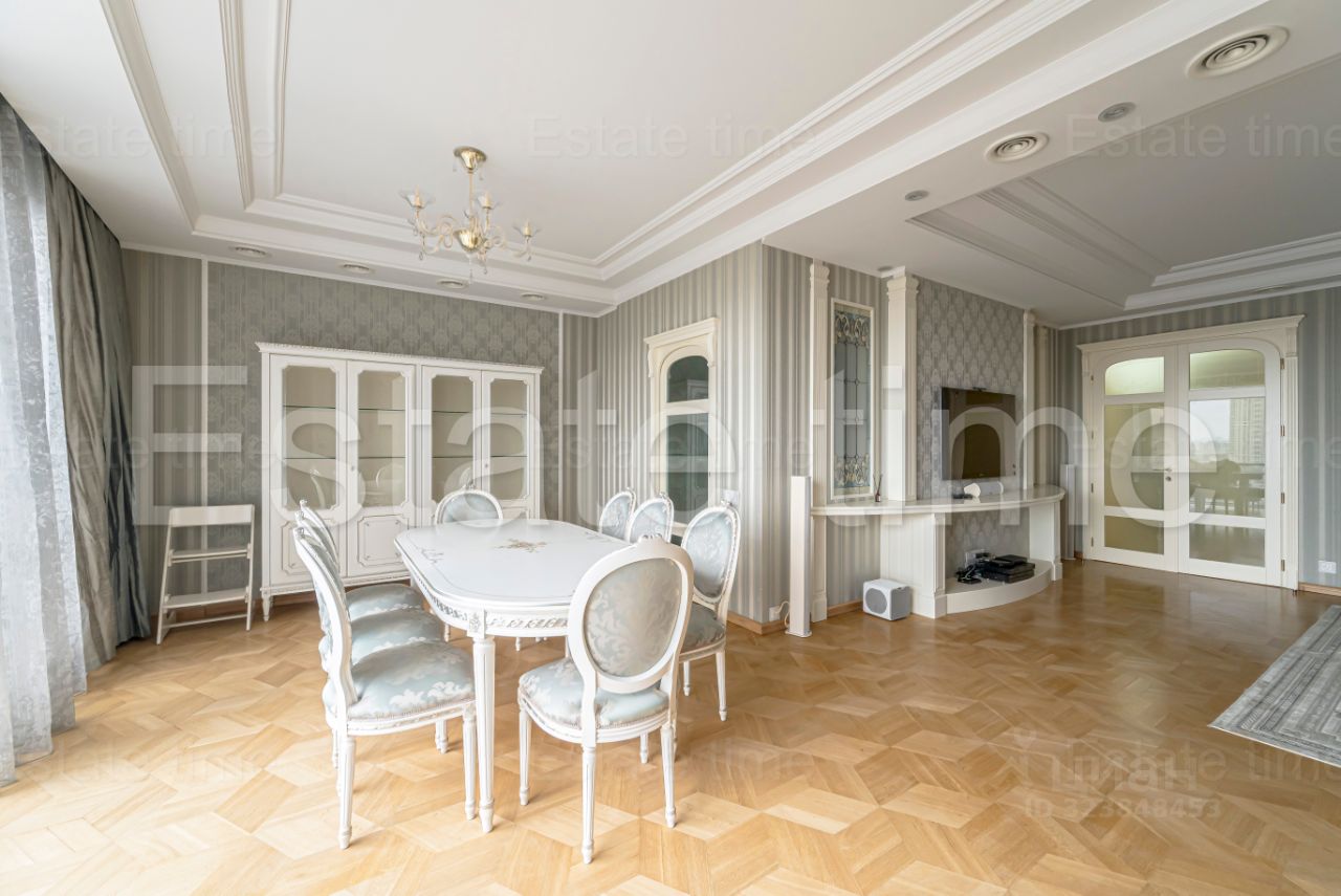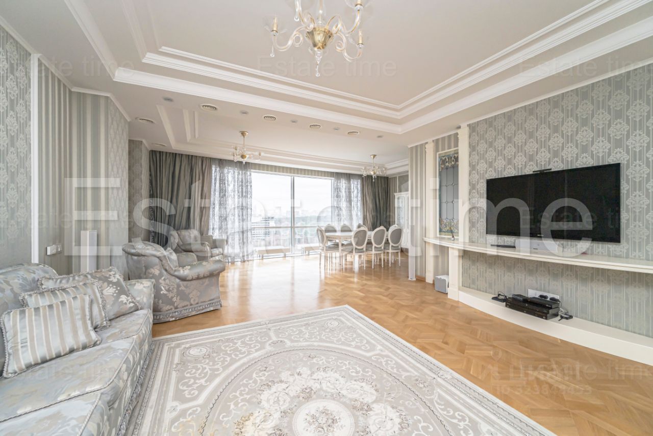 Показ по согласованию. Предлагается в аренду шикарная четырехкомнатная квартира в жилом комплексе Кутузовская Ривьера. Выполнен качественный ремонт в классическом стиле. Грамотная планировка: просторная гостиная с потрясающим видом, оборудована всей необходимой мебелью. Изолированная кухня, оснащена всей бытовой техникой Miele. Отдельным блоком от гостиной основная спальня с просторным санузлом (ванна и душевая кабина), гардеробная комната. Детская комната. Комната свободного назначения (возможно использовать, как комнату или кабинет). Второй санузел при двух комнатах (ванна). Гостевой санузел (душевая кабина). Просторная постирочная комната. Хозяйственная комната. Просторный холл, встроенный шкаф-купе. Огороженная, охраняемая территория, пропускная система. Видеонаблюдение по периметру. На территории комплекса каскадный водопад, детские площадки, салоны красоты, фитнес зал, детский сад Discovery.
