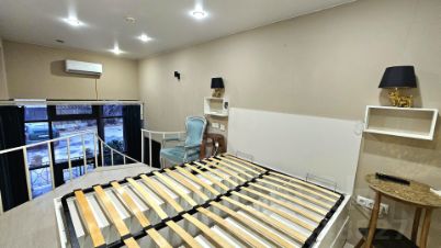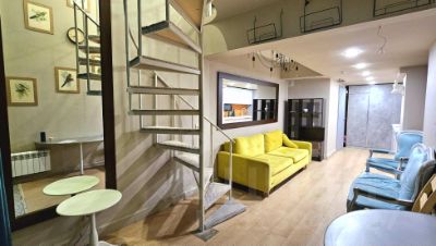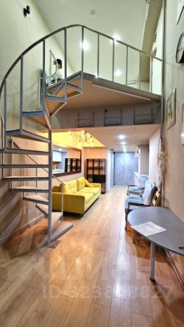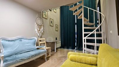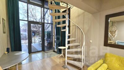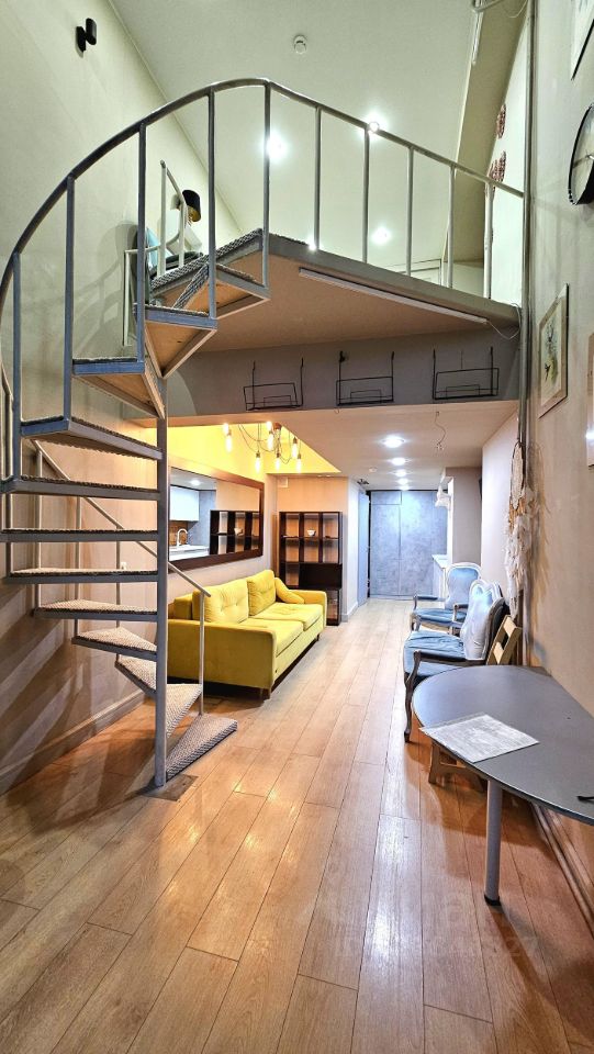 Апартамент расположен на первом уровне 4-этажного здания, имеет собственную огороженную террасу 12 кв.м с уютными креслами. Внутри апартамента высота потолков более 6м, два уровня, соединенных винтовой лестницей. Окна входной группы более 5 метров в высоту, создают открытое и полное света пространство. При желании приватность регулируется зелеными бархатными гардинами на электроприводе.