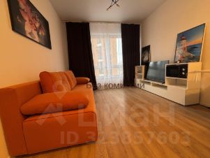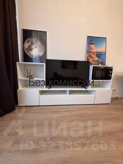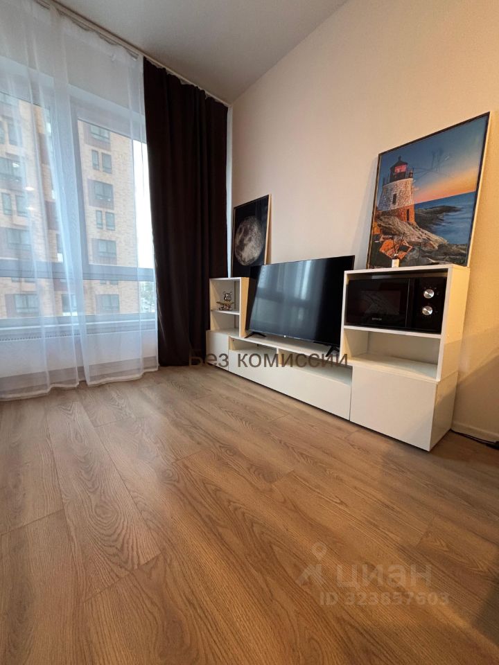 -Просторная гостиная с современным дизайном и комфортной мебелью, включая диван, телевизор (yandex)и обеденный стол для 2 человек.