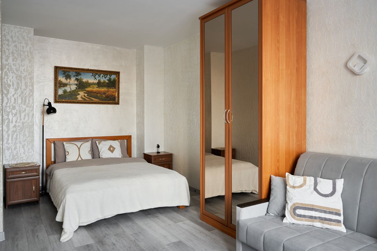 - Просторная спальня с двуспальной кроватью