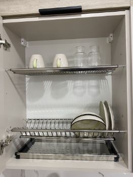 - вместительная кухня: вытяжка, варочная панель, чайник, набор кухонных принадлежностей;