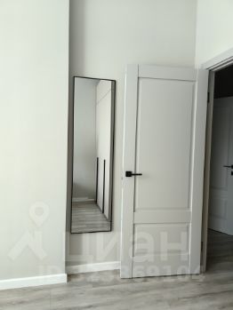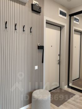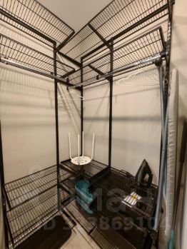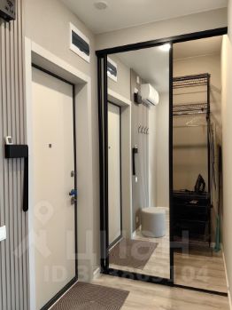В зоне прихожей так же выделена функциональная зона хранения вещей - вместительная гардеробная с большим зеркалом в полный рост, есть пылесос, утюг и гладильная доска.