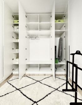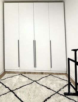 - Много мест хранения (3 шкафа до потолка + вместительный комод)