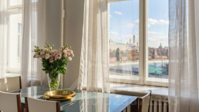 Квартира с видом на Кремль в комплексе "Дом на набережной" на острове Балчуг. Выполнена лаконичная отделка в спокойных светлых тонах. Благодаря большом количеству окон и высоким потолкам пространство наполнено естественным светом. Спланирована гостиная-столовая-кухня, спальня с выходом на балкон, ванная комната. Квартира укомплектована мебелью и техникой. Есть возможность убрать мебель или сделать перестановку. Установлена система кондиционирования, стиральная и посудомоечная машина. Из гостиной открываются панорамные виды на Москву-реку и Кремль, окна спальни выходят в тихий внутренний двор. Парковка во дворе за воротами.