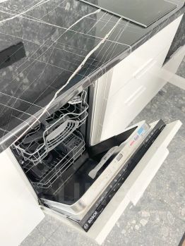 Бытовая техника: стиральная машина, холодильник, варочная панель, духовой шкаф, электрический чайник, телевизор, посудомоечная машина, кондиционер.