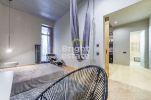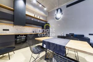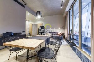 Эта квартира создана для тех, кто ценит красоту пространства, комфорт и тишину. Интерьер выполнен в современном стиле лофт: просторная кухня-гостиная, наполненная естественным светом, объединена с зоной отдыха. Спальня оформлена с особым вниманием к деталям — здесь можно расслабиться на кушетке Корбюзье или заняться йогой в подвесном гамаке. Панорамные окна выходят в тихий переулок, а по всему периметру квартиры проходит лоджия — идеальное место для занятий спортом или уютной релакс-зоны.