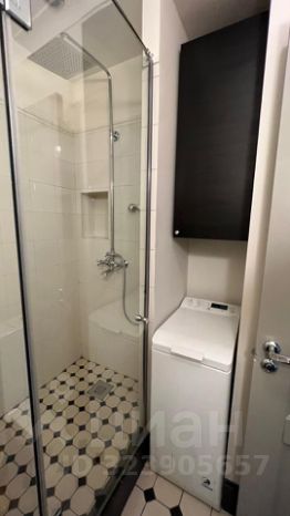 Ванная: шкаф умывальный, унитаз, душевая, стиральная машина.