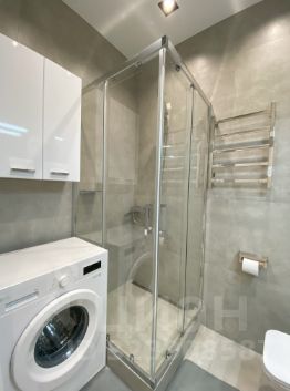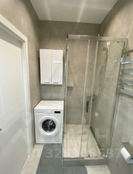 - Санузел с душевой кабиной 80*90, стиральной машиной, корзиной и сушилкой для белья и местами для хранения туалетных принадлежностей