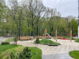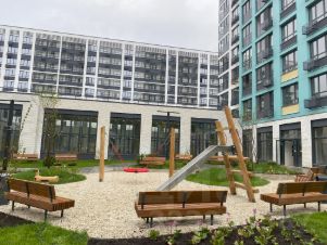 - Закрытый двор дома выходит в парк с каскадом ручьев и прудов и экотропой до метро