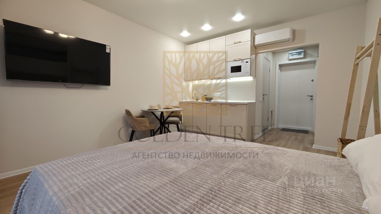 В квартире новые ремонт, мебель и техника: кондиционер, варочная панель, микроволновая печь, холодильник, большой телевизор, посудомоечная и стиральная машины. Вся необходимая мебель есть как на кухне, так и в жилой зоне. Полноценная двуспальная кровать с местом для хранения, большой трехстворчатый шкаф в прихожей, уютная вешалка в спальне. Несмотря на размеры, в квартире есть всё и при этом не тесно. Просторная ванная комната с душевой кабиной.