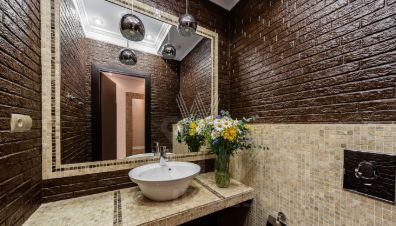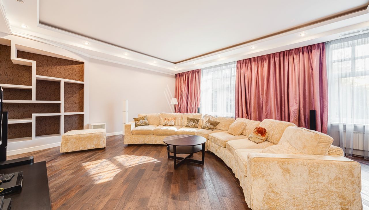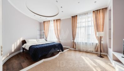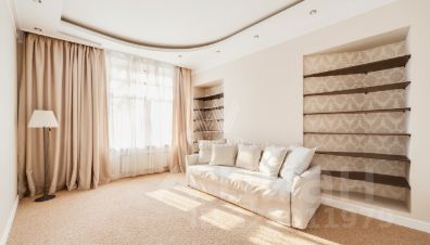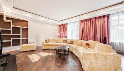 Бонус партнёрам 50%. Квартира с 3-мя спальнями общей площадью 220 м² в доме рядом с набережной Москвы-реки и Новым Арбатом. Выполнен дизайнерский ремонт с использованием натурального дерева и камня. Интерьер оформлен в приятных светло-бежевых тонах, на полу — паркетная доска и мягкий ковролин. Санузлы отделаны мрамором и мозаикой, установлено джакузи. Оборудована кухня со встроенной бытовой техникой.