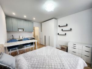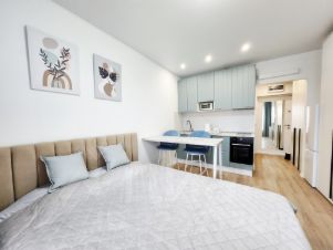 В студии есть вся необходимая мебель и бытовая техника для комфортной жизни: