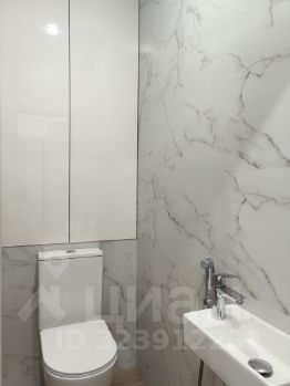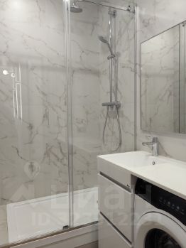 Стильная спальня с системой хранения, двуспальная кровать с новым матрасом. Санузел оборудован: душевой, стиральной машиной, сантехникой, с большим зеркалом и полотенцесушителем.