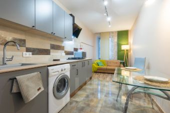 • Стильная кухня студия (14 кв. м) — большая и эргономичная, отлично подойдёт для готовки и приёма гостей.