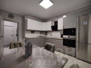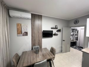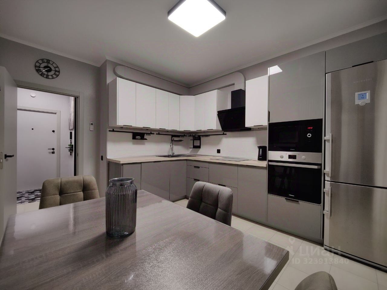 Просторная кухня, угловое расположение шкафов, полностью укомплектованы встроенной техникой: СВЧ, духовой шкаф, посудомоечная машина, индукционная варочная панель, полноценная вытяжка с выводом, электрический чайник и холодильник Liebherr. Большой основательный стол (при необходимости еще раскладывается) и удобные мягкие стулья. Окно декорировано шторами. Смарт телевизор Haier 32, кондиционер Hisense.