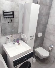 Квартира небольшая, но с удачной планировкой, просторный санузел с ванной, кухня гостиная с двухспальным диваном и шкафом, спальня с двухспальной кроватью, рабочим местом и просторным встроенным шкафом. Также большой шкаф в просторной прихожей. Французские балконы, сплит-системы в обоих комнатах. 3 лифта на этаже. Окна на юг, видно солнце.