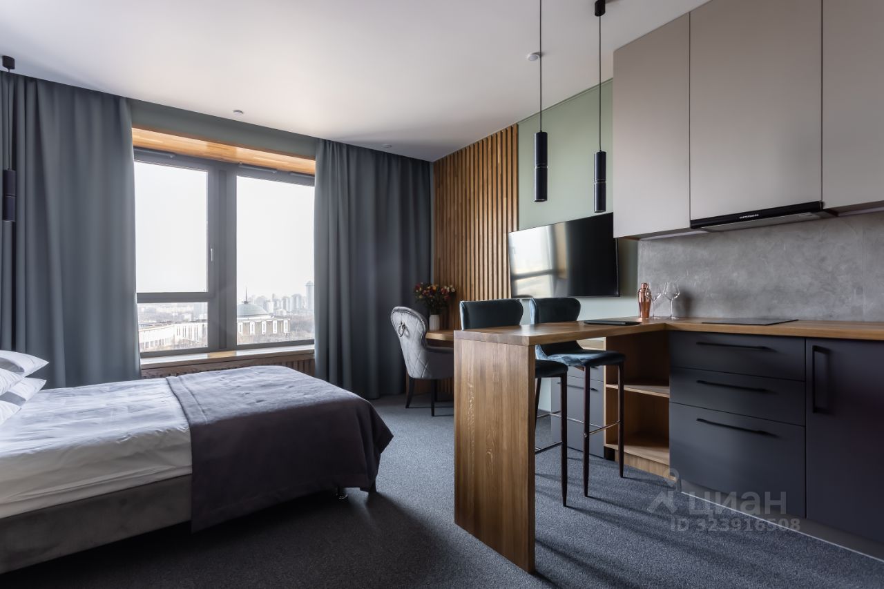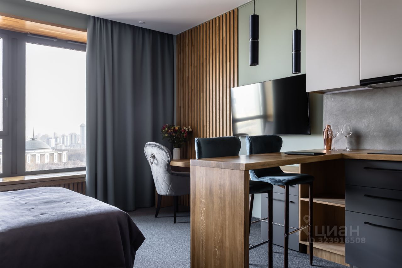 Видовой Апартамент 5 Делюкс на 22 этаже 28-этажного ЖК Матч Поинт, изюминкой которого являются панорамные окна на Парк Победы и Поклонную гору! Идеальное решение, чтобы отдохнуть с комфортом после напряженного рабочего дня или провести время вдвоем в романтической обстановке!