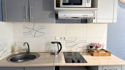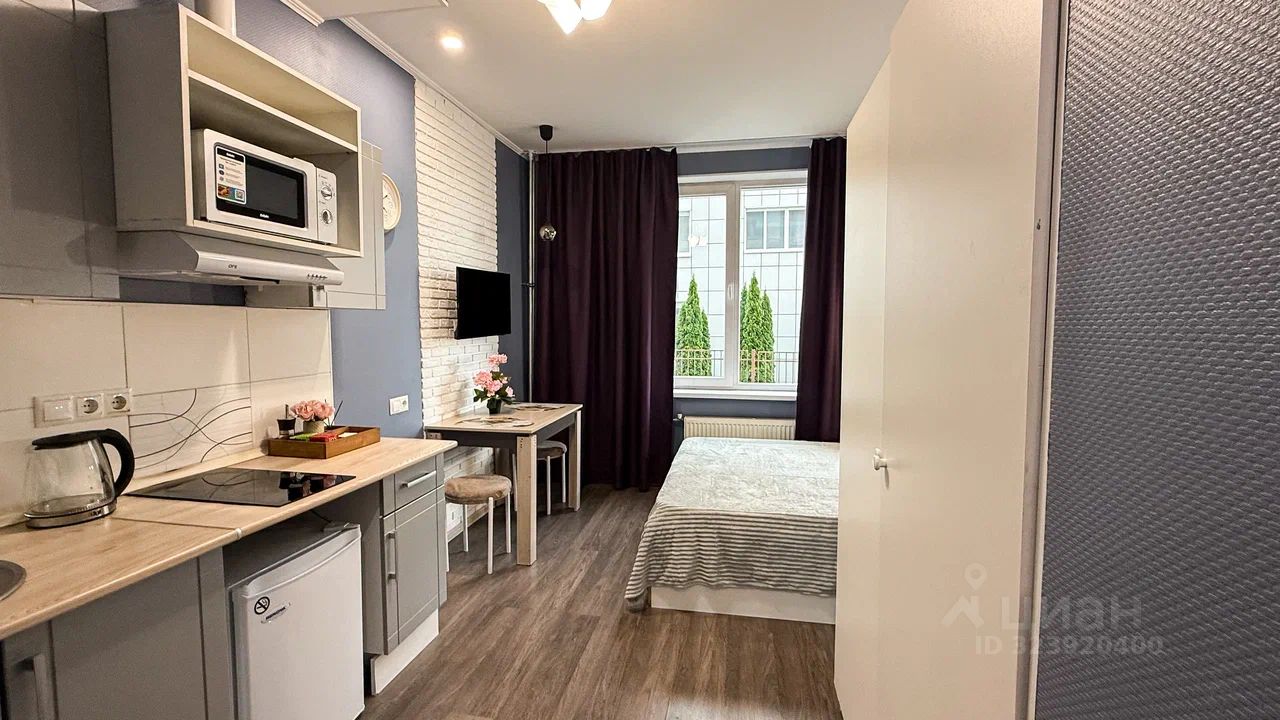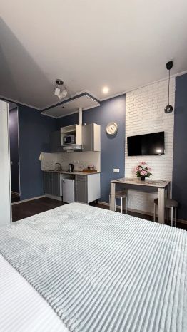 Студия полностью оборудована для комфортного проживания: телевизор, бесплатный Wi-Fi, стиральная машина, утюг, фен, варочная панель, чайник и микроволновка. Есть штопор и бокалы. Регулярная уборка профессиональной химией и дезинфекция от насекомых, а также смена белья на чистое и свежее проводятся перед каждым заездом.
