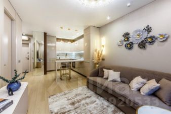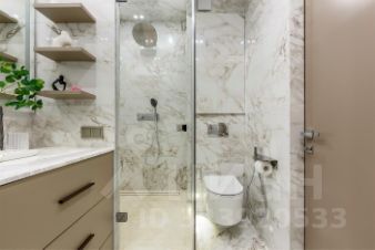 В квартире есть вся необходимая мебель на кухне и в комнате, а также современная техника: кондиционер, холодильник, телевизор, посудомоечная и стиральная машины. Санузел совмещенный с ванной.