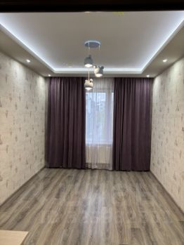 В квартире сделан качественный евроремонт. В просторной кухне площадью 12 кв. м есть вся необходимая мебель и техника: холодильник, телевизор и стиральная машина. В комнате также имеется мебель для комфортного проживания. Окна выходят во двор, что обеспечивает тишину и спокойствие. Санузел совмещённый, оборудован современной душевой кабиной. Также у квартиры есть лоджия, где можно отдохнуть на свежем воздухе.