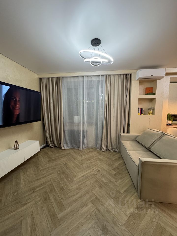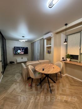 Светлая квартира с дизайнерским ремонтом в центре города. Кухня совмещена с гостиной, спальня зонирована. Есть удобная гардеробная — всё продумано для комфортного проживания.