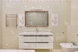 В квартире имеются три полных санузла и удобная прачечная, что предоставляет дополнительный комфорт и функциональность.