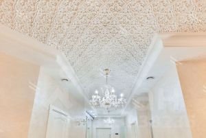 Элегантные подвесные люстры и декор из стекла придают обстановке стильный и уютный вид.