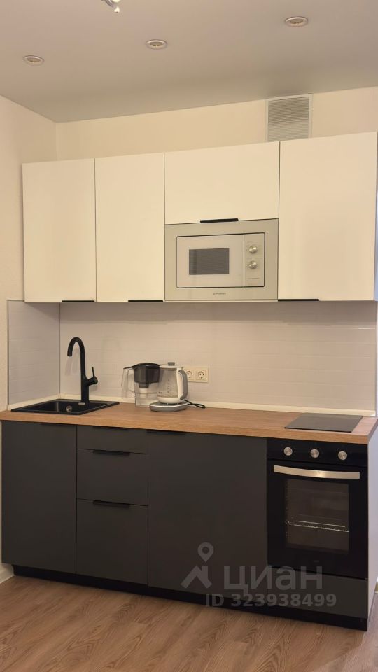 На кухне встроенная микроволновка, встроенный холодильник (под микроволновкой), варочная панель, духовка с конвекцией.