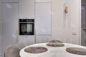 Просторную кухню-гостиную, идеально подходящую для дружеских встреч и семейных ужинов.