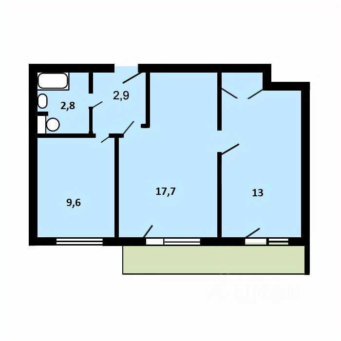 Есть просторная застекленная лоджия, совмещенный санузел с ванной.
