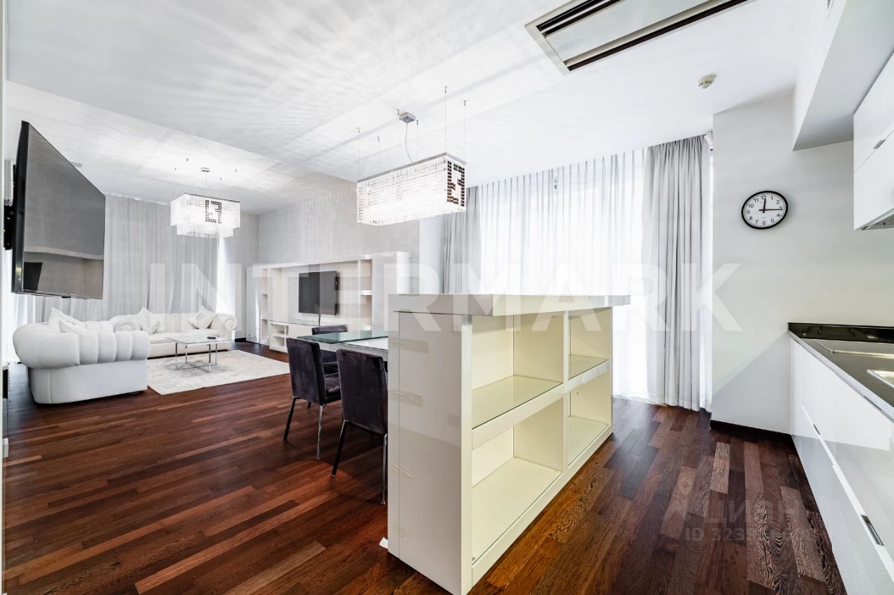 ID 27753. Предлагается великолепная квартира в современном стиле, расположенная в элитном жилом комплексе "Кристалл Хаус" с круглосуточной профессиональной охраной, внутренним зеленым двором. Квартира очень светлая и оборудована всей необходимой качественной техникой для комфортного проживания. Большая кухня-гостиная, 2 светлые спальни, 2 великолепных ванных комнаты с джакузи и душевой кабиной, 2 гардеробные комнаты, постирочная. В стоимость входит одно машино-место. Комплекс расположен рядом со ст.м. Парк Культуры. По данному объекту предусмотрено гарантированное вознаграждение профессиональным агентствам и частным брокерам.