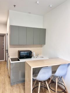 Апартаменты находятся в новом трехэтажном доме на втором этаже. Первый и третий этажи технические, поэтому вас никто не будет беспокоить. Гарантирована тишина и уединение. В помещении новая мебель и техника, современный ремонт, высокие потолки, большие окна, много света и уюта. В доме центральное отопление, всегда тепло. В шаговой доступности магазины, рынок и кафе. Все соседи живут постоянно, соседей не слышно.