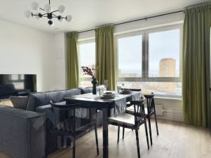Просторная квартира, оснащенная всей техникой и мебелью для жизни.