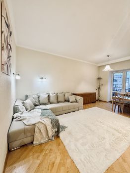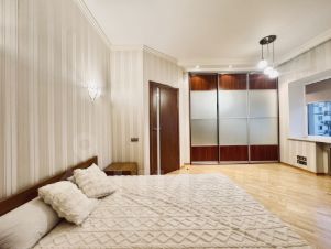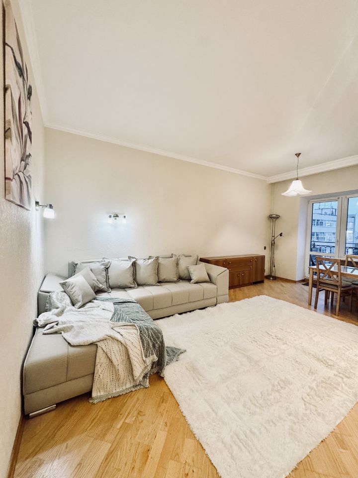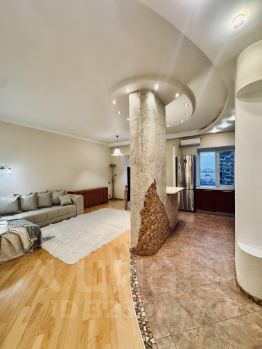 Квартира после ремонта, полностью меблирована, есть кондиционеры в каждой комнате, посудомоечная машинка, стиральная машинка, холодильник, кровать 2-спальная, два дивана-кровати (один угловой, в гостиной и один - в спальне). Под арендатора можем докупить дополнительно спальное место (кровать). Квартира оборудована тремя огромными встроенными шкафами, проблем с хранением вещей у Вас не будет.