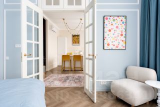 Высокие потолки, воздушные двери делают квартиру очень уютной.