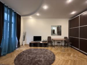 Сдаётся уютная однокомнатная квартира с евроремонтом в шаговой доступности от метро Тверская — всего 2 минуты пешком. Общая площадь квартиры составляет 45 кв. м, из которых 25 кв. м занимают жилые комнаты и 6 кв. м — кухня. Квартира расположена на 6 этаже 7-этажного дома с высотой потолков 3.2 метра, что добавляет ощущение простора и света.