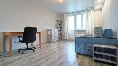 - В комнате установлен вместительный шкаф-купе, стоит раскладной диван, письменный стол с офисным стулом, комод, журнальный столик, тумба и полки для хранения книг и других личных вещей;