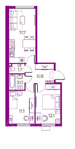 СДАЕТСЯ ВПЕРВЫЕ 2-х комнатная КВАРТИРА распашного типа (ЕВРОТРЕШКА) с просторной кухней -гостиной (17,7 м2) и двумя изолированными комнатами.