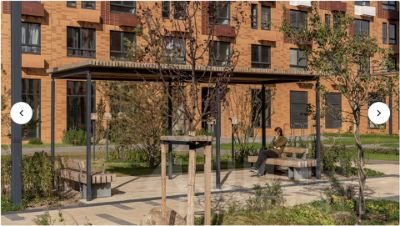 Во дворах-парках жилого квартала уютно и спокойно: здесь много зелёных зон и нет автомобилей. А ещё приятно отдохнуть после работы, погулять с детьми, почитать в тени или заняться йогой.
