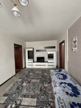 В квартире есть всё необходимое для комфортного проживания: холодильник и стиральная машина. Мебель расставлена на кухне и в одной из комнат. Ванная комната оборудована ванной. Санузел отдельный. Из окон открывается вид на улицу, что делает квартиру светлой и уютной.