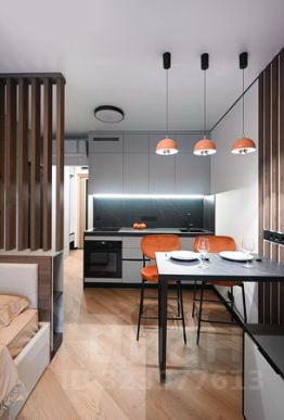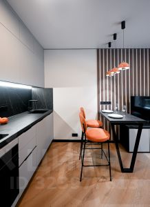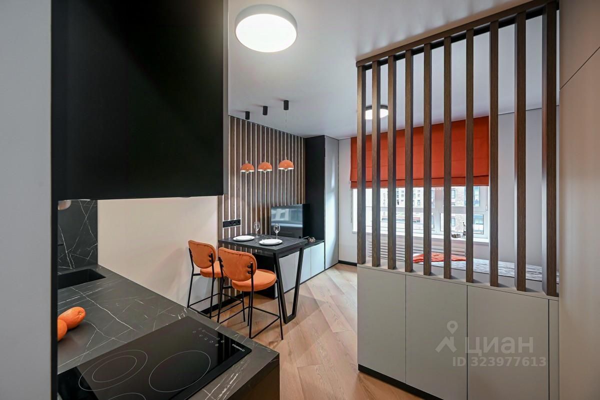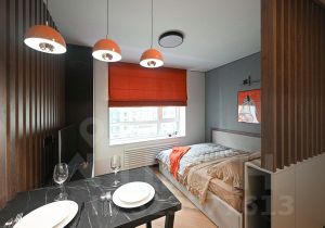 В квартире сделан дизайнерский ремонт. В студии есть вся необходимая мебель, а также полный комплект техники: холодильник, телевизор, стиральная и посудомоечная машины, кондиционер, а также проведенный интернет. Ванная комната оборудована душевой кабиной.