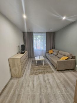 В квартире сделан качественный евроремонт, все готово для комфортного проживания. Просторная комната зонирована на 2 помещения: спальное место и гостиная.