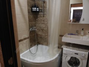 В квартире выполнен современный евроремонт. Студия полностью меблирована, есть всё необходимое для комфортного проживания: кондиционер, холодильник, телевизор и стиральная машина. Ванная комната оборудована душевой кабиной, поэтому вы сможете быстро освежиться после долгого дня. Кухня оснащена всей необходимой мебелью и техникой для приготовления пищи.