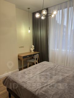 Квартира оформлена в дизайнерском стиле, что создаёт особую атмосферу уюта и современности. В гостиной есть вся необходимая мебель (диван, комод, буфет, стол, 4 стула) и телевизор, а кухня оснащена современной техникой Haier и Manufeld: холодильник, посудомоечная машина, варочная панель, духовой шкаф, вытяжка. Санузел совмещённый, а в ванной комнате установлена ванна и стиральная машина. В спальне кровать и матрас производства Askona, две тумбочки и письменный стол. Из спальни вход в гардеробную, где расположены два шкафа. Из прихожей вход во вторую оборудованную гардеробную. В квартире есть кондиционер, интернет.