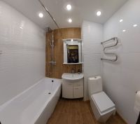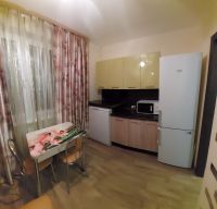 Квартира расположена на 1-м этаже 16-этажного панельного дома. Потолки высотой 2.65 метра создают ощущение простора. В квартире сделан аккуратный ремонт. В комнате и на кухне есть вся необходимая мебель для комфортного проживания. Из техники: холодильник, телевизор и стиральная машина. Санузел совмещённый, просторный, оборудован тропическим душем, ванная комната в плитке, удобный унитаз.