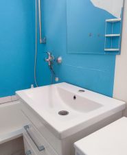 Квартира с косметическим ремонтом, в светлых тонах. В комнате и на кухне есть необходимая мебель, стол, стулья, кровать, комод. Установлены кондиционер, холодильник и стиральная машина.