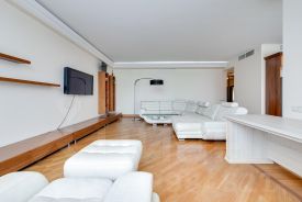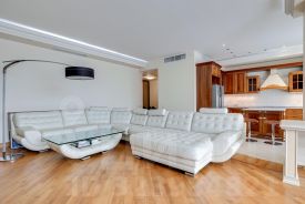 В квартире выполнен ремонт в светлых тонах с элементами классики, использованы натуральные материалы. Имеется необходимая мебель и техника для проживания(стиральная машина, холодильник, духовка и варочная панель, посудомойка, телевизор). Установлена система кондиционирования, теплые полы в с/у, высокие потолки 3м.