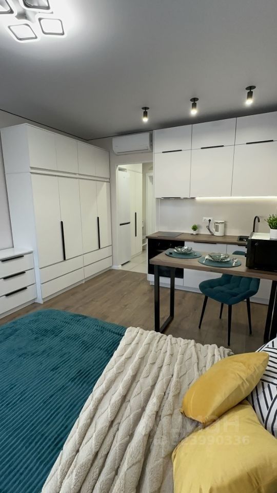 В квартире есть прихожая, комната, объединенная с кухней, и комфортный санузел с душевой кабиной. Все помещения обставлены новой эргономичной современной мебелью (шкафы, кухонный гарнитур со встроенной техникой, обеденный и рабочий столы, стулья, кровать, удобный комод) и оборудованы ВСЕЙ НЕОБХОДИМОЙ новой техникой (варочной панелью, духовым шкафом, вытяжкой, вместительным холодильником, кондиционером, эл.чайником, СВЧ-печью, стирально-сушильной машиной(!). Для долгосрочного проживания есть всё необходимое из посуды, текстиля, постельного белья всё новое!